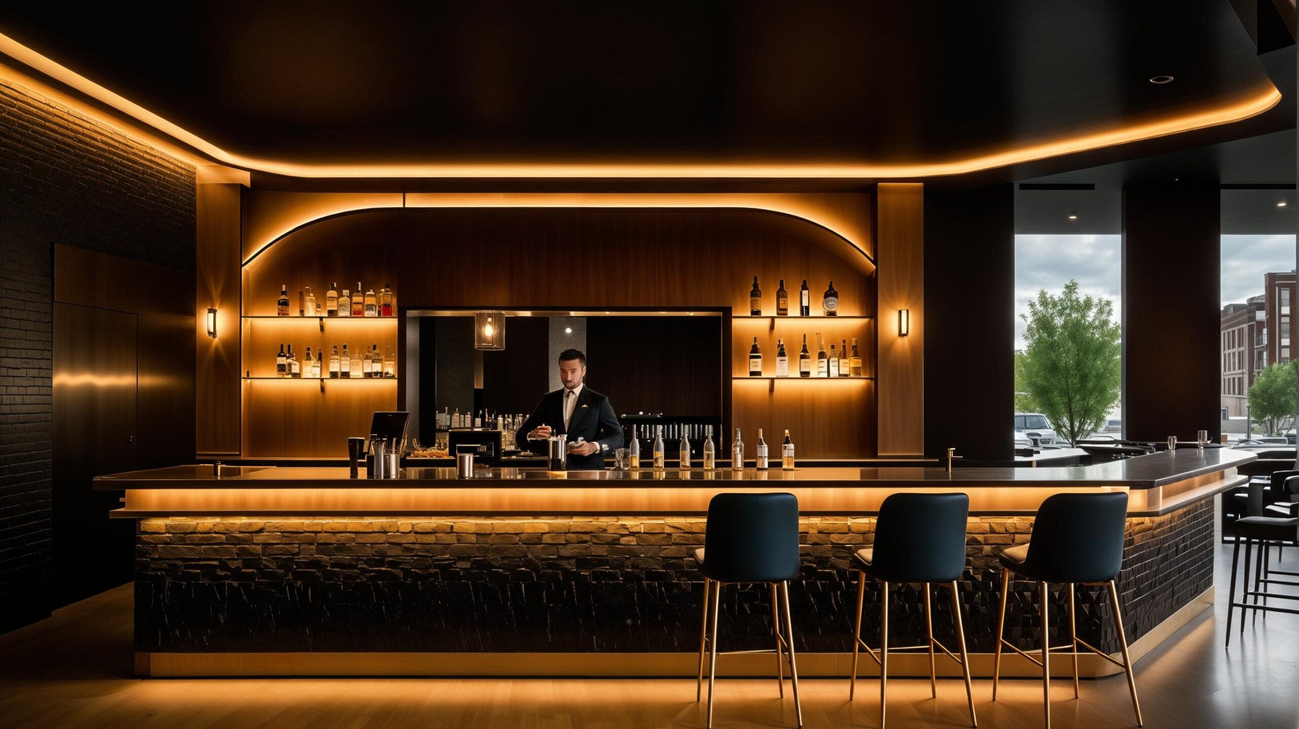 - Ergonomic bar design: Custom joinery with integrated lighting, POS and data cabling ensures speed and clarity in service.