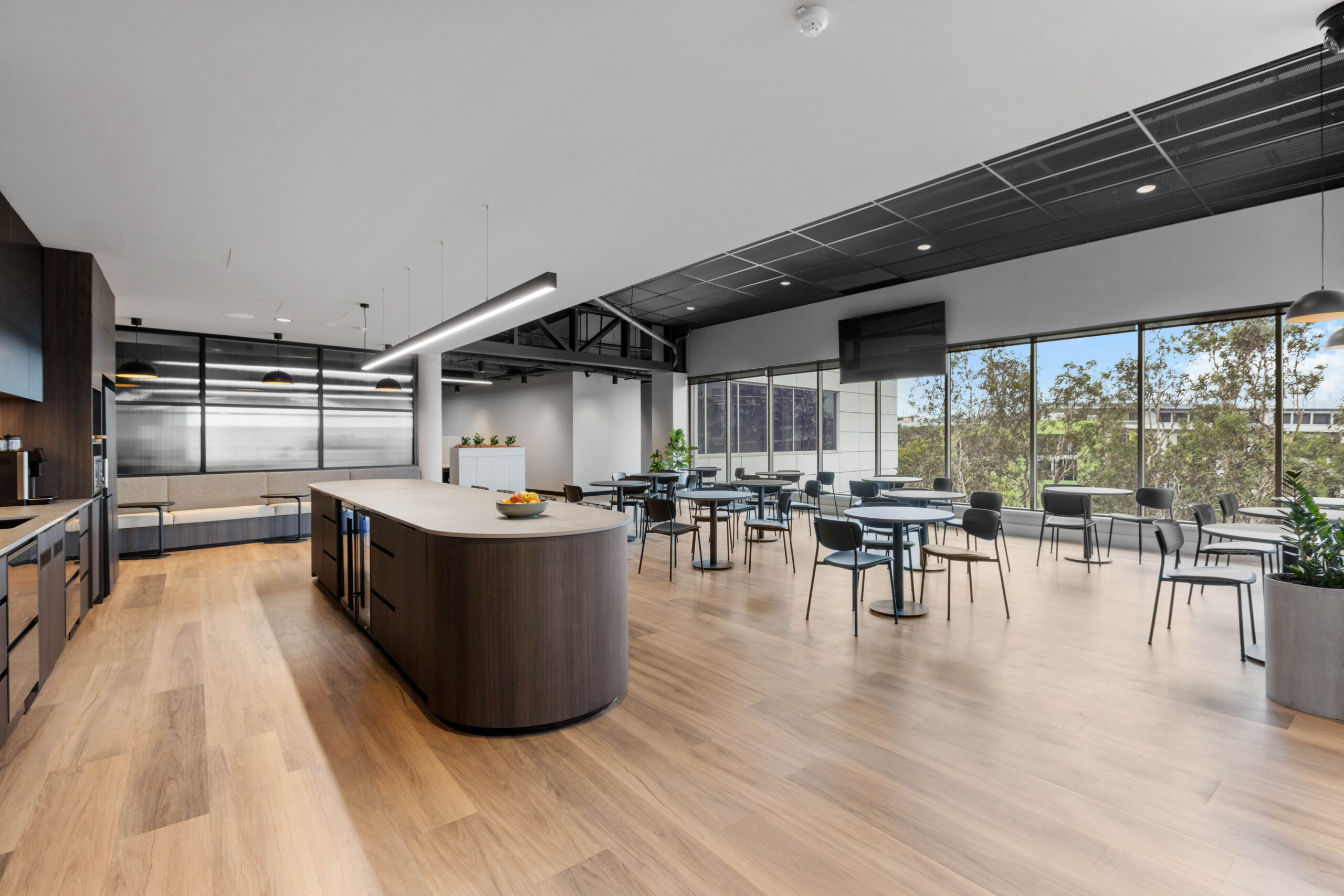 Principal Designer Sonia Leith worked collaboratively with stakeholders to ensure that changes to lay-out, fittings and amenities were fit-for-purpose and met the stringent requirements of the client. As well as refining the floor plan to maximise server, workforce, and multi-use areas, bespoke joinery was designed to complement the need for space-efficiency, privacy, and security.