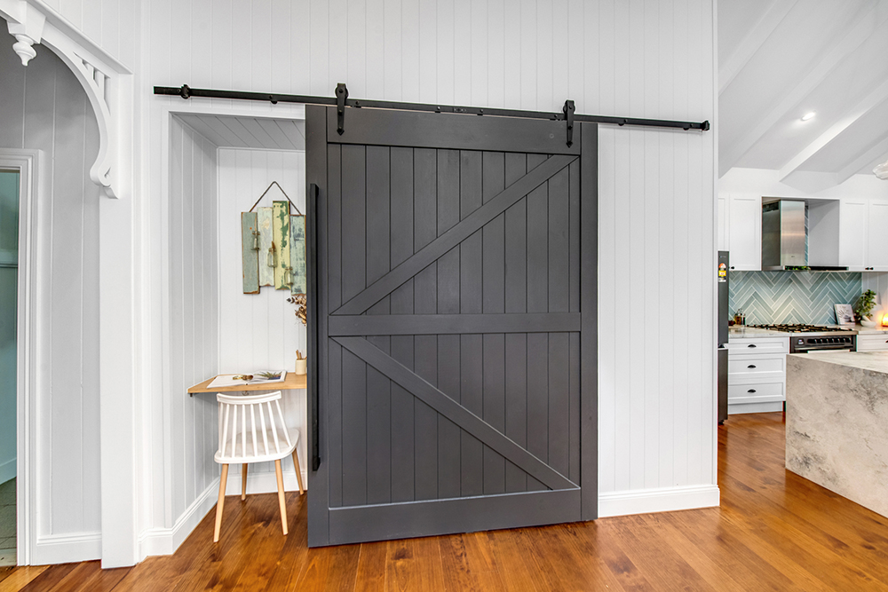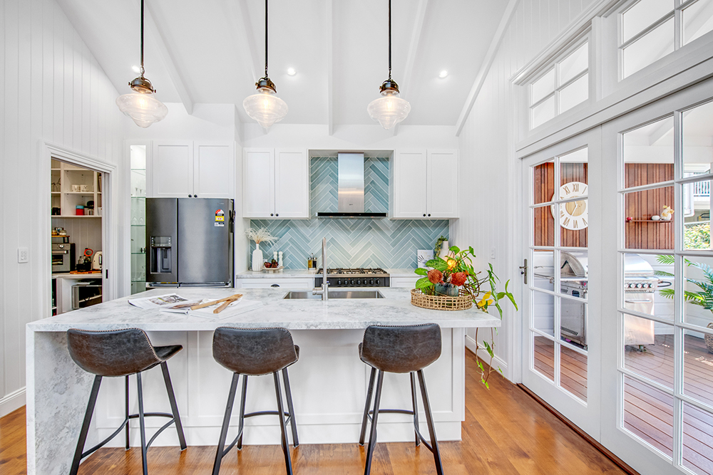 Leithal Designs undertook a comprehensive renovation project, which involved expanding the home. This transformation entailed the removal of most of the internal structure, retaining only the front veranda and two bedrooms. The end result was a lavish 4-bedroom, 2-bathroom residence featuring a cozy study nook, a spacious kitchen with a pantry, and generous dining and living areas. Additionally, a large balcony was added, offering picturesque views of the serene gardens.