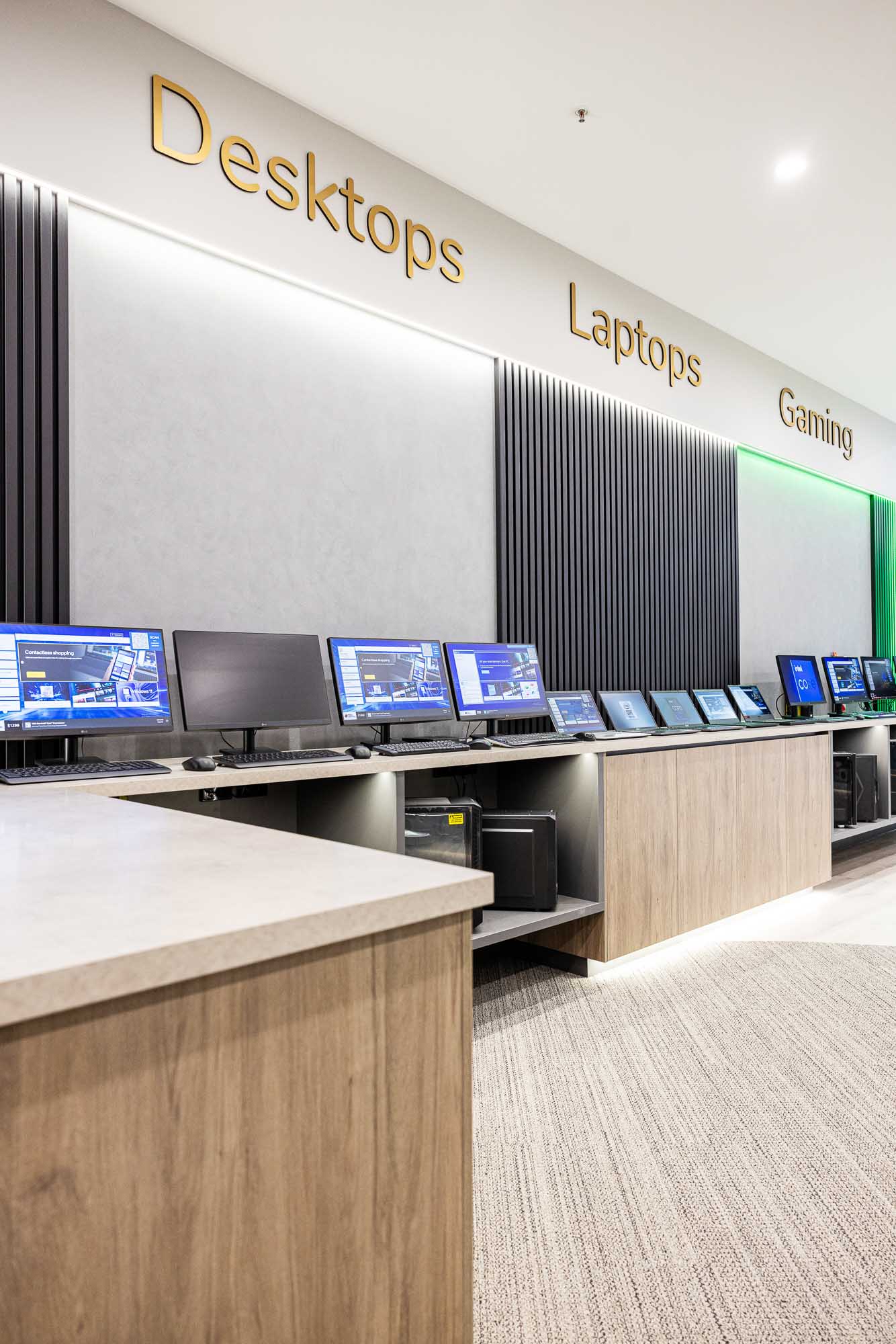 Pro-Computers is known predominantly as an IT service and computer repairs store, Pro Computers wanted their Morayfield retail store front to highlight the resale range of gaming computers, computers, laptops, and accessories they offer in a modern and sophisticated display.