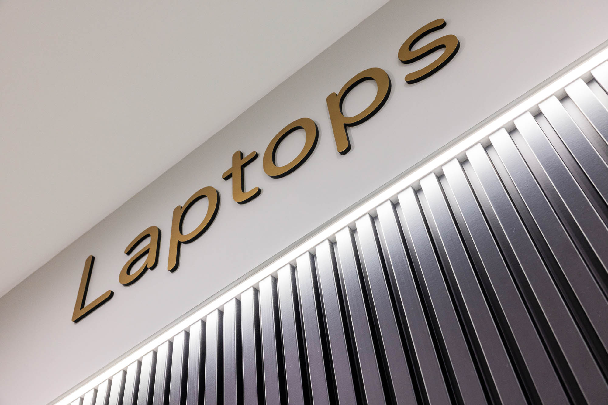 Storage and display cabinets reflected a high-end technology and to the higher end technology market. As screens and glass cabinets reflect light, Leithal Designs designed an LED lighting scheme that lifted the displays while providing sufficient lighting for customers to clearly see the features of the display computers – without glare and reflections.